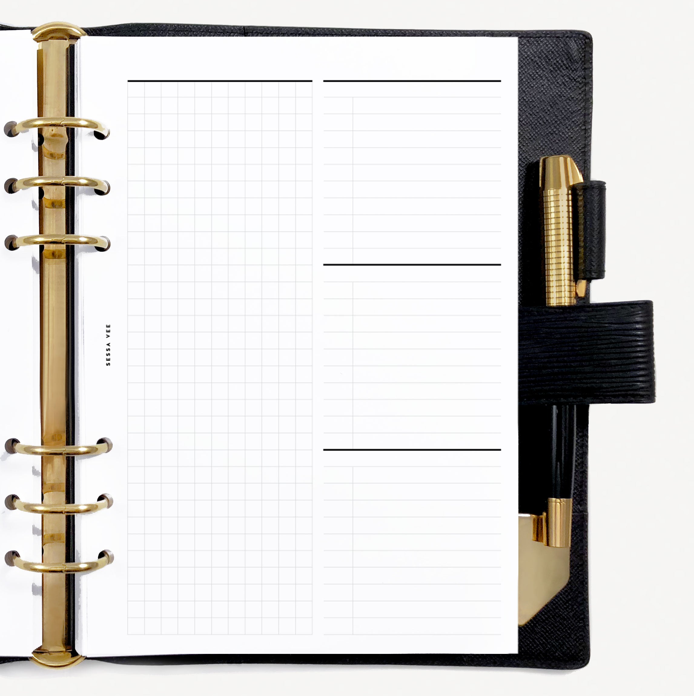 3 Task Lists w/ Vertical Grid - A5 Size - Planner Inserts