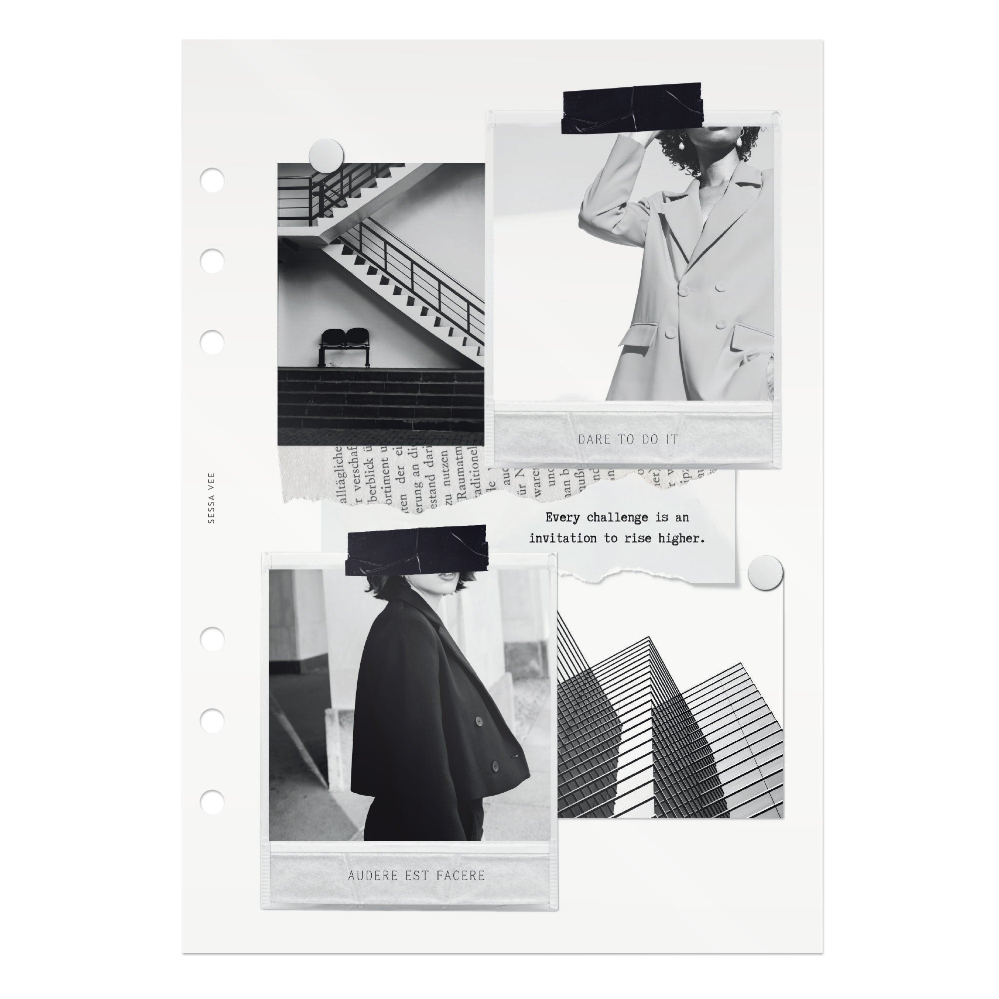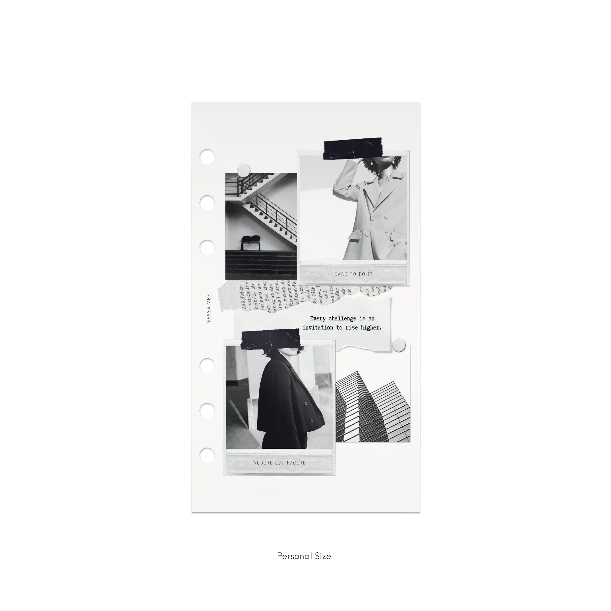 The above planner uses "Half Letter" inserts which are a bit taller and narrower than Sessa Vee A5 pages. (See below.)