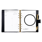 The above planner uses "Half Letter" inserts which are a bit taller and narrower than Sessa Vee A5 pages. (See below.)