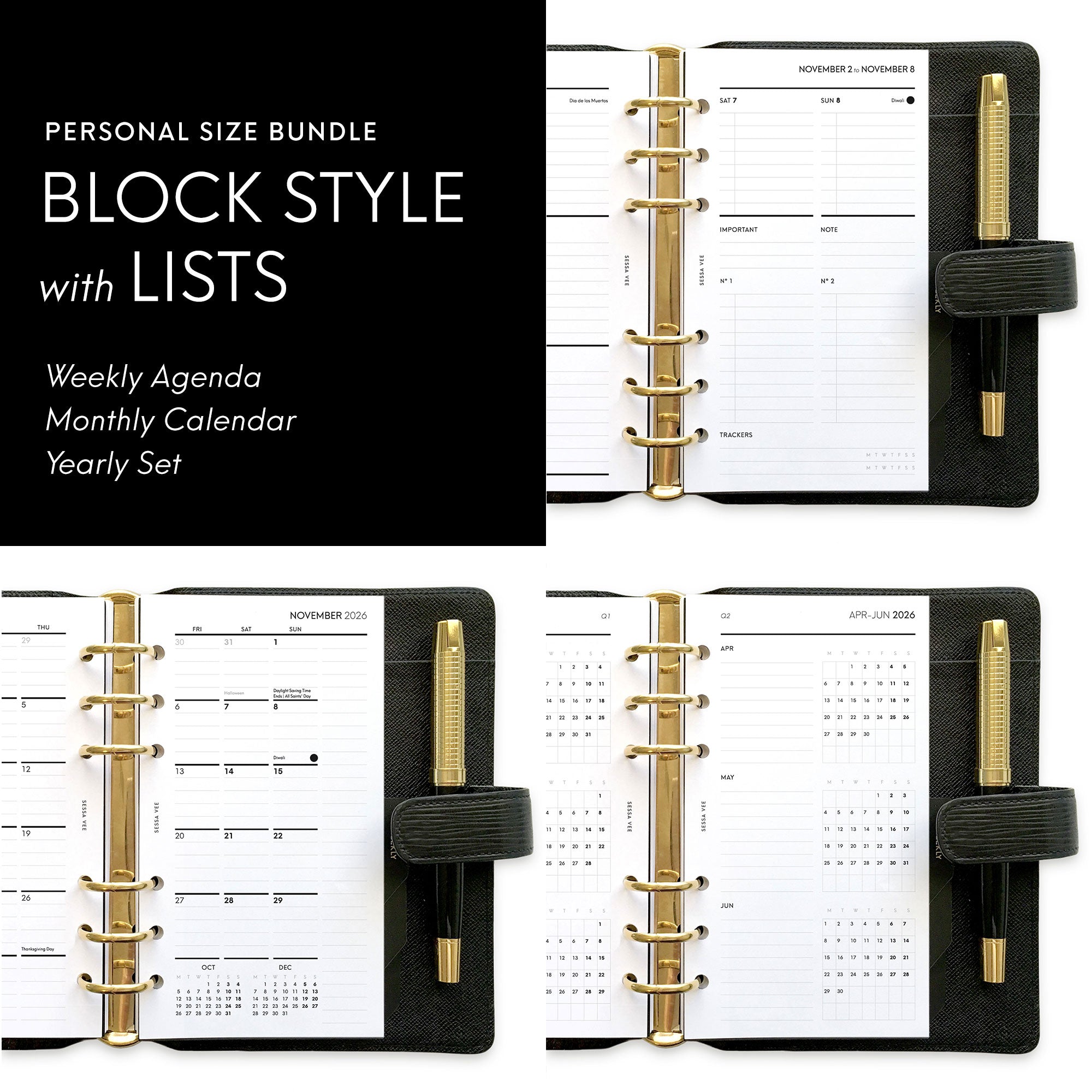 2026 Bundle - Weekly Block with Lists, Yearly & Monthly Planner Inserts - Personal Size