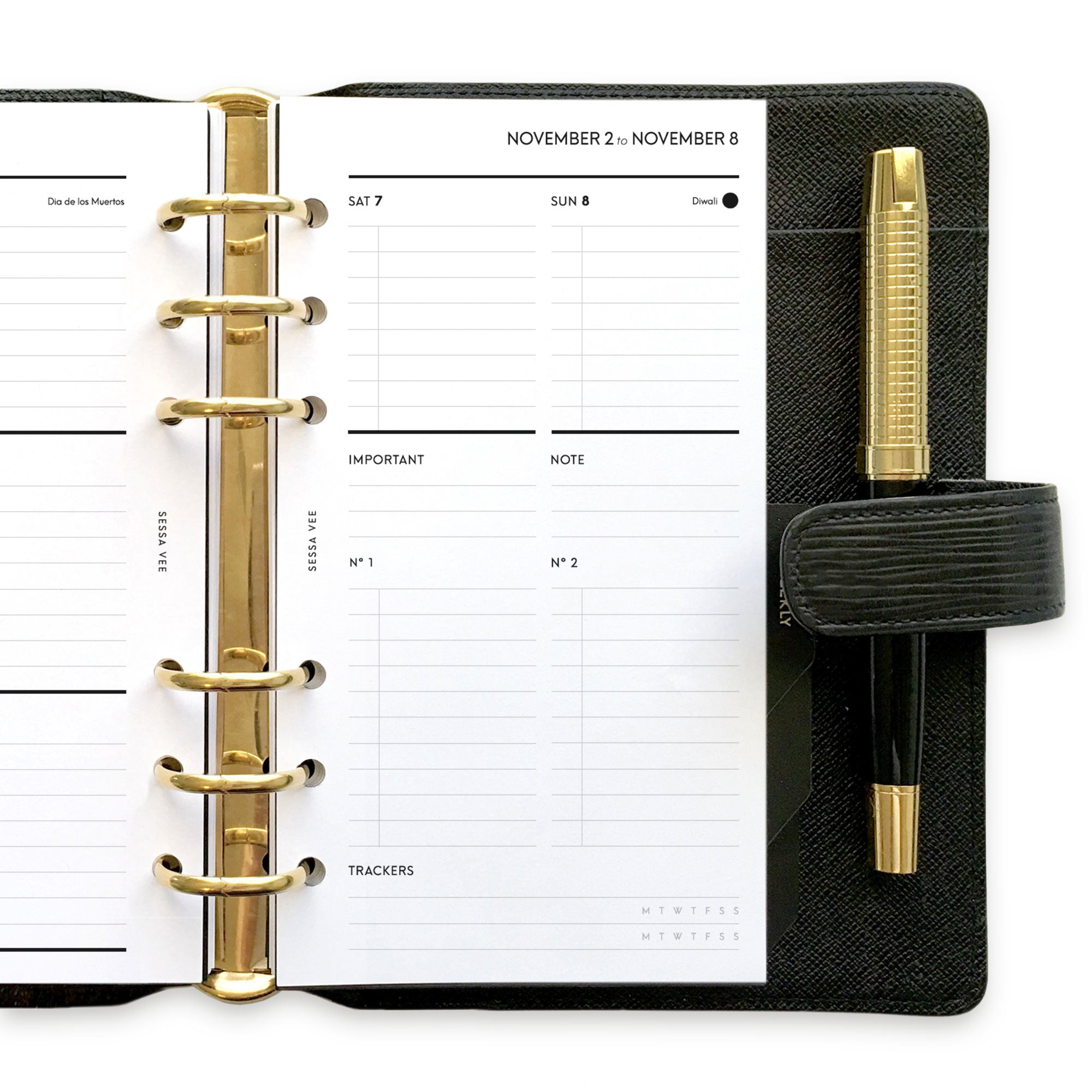 • Quarterly overview on 4 pages (3 months per page), section cover & lined back pages
