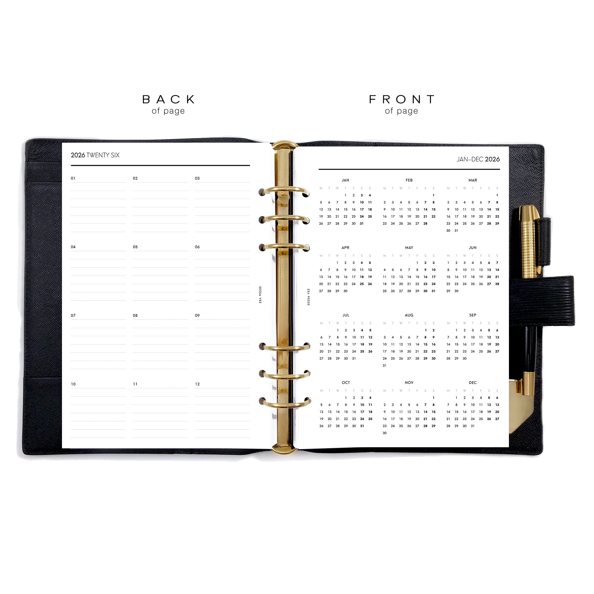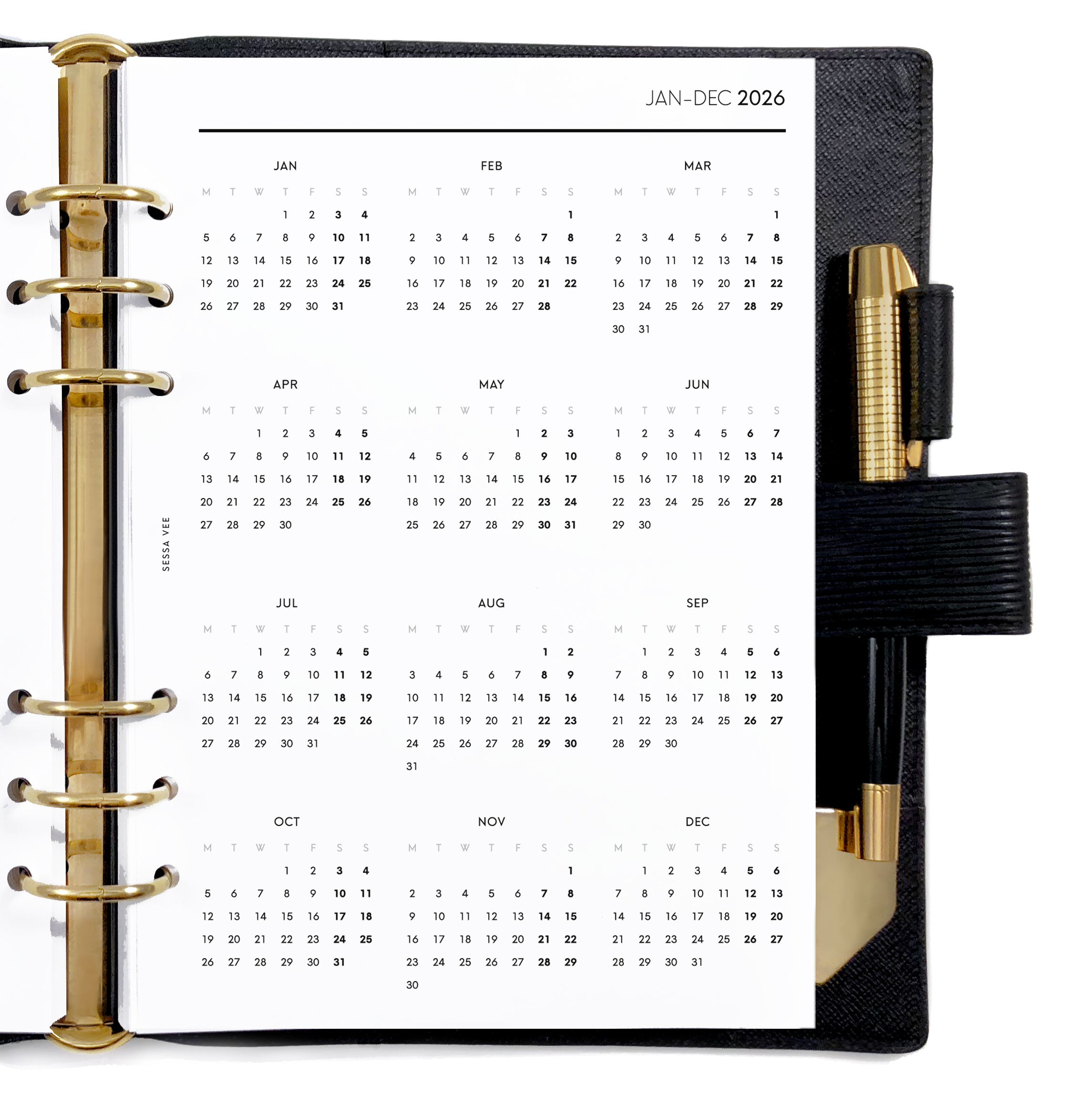 Simplified Calendar, Year on 1 Page - A5 Size - Planner Insert