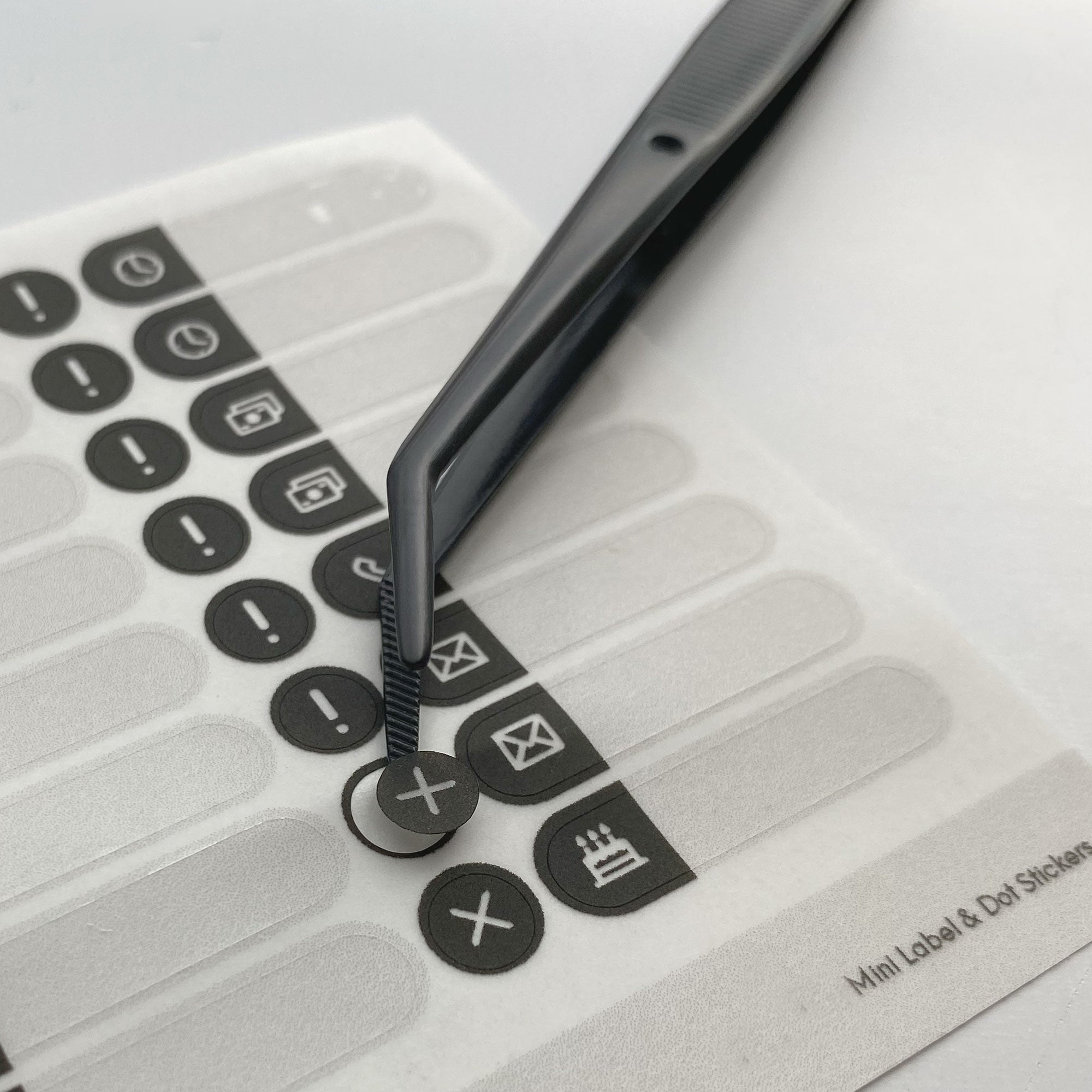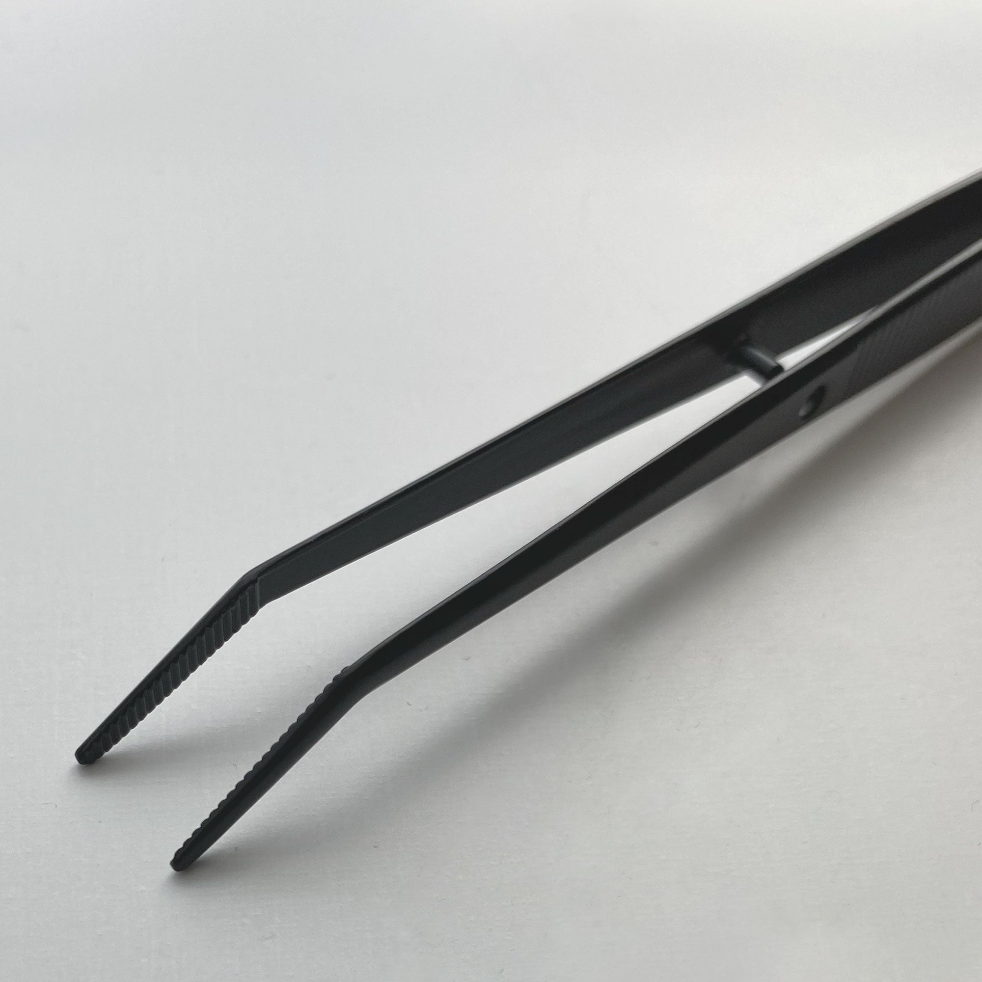 Place and handle small stickers and labels with ease onto your next planner, journal or scrapbook page.  These tweezers feature a long 6" handle, a sleek black angled design and a serrated tip that allows use for gripping a variety of different papers and materials.
