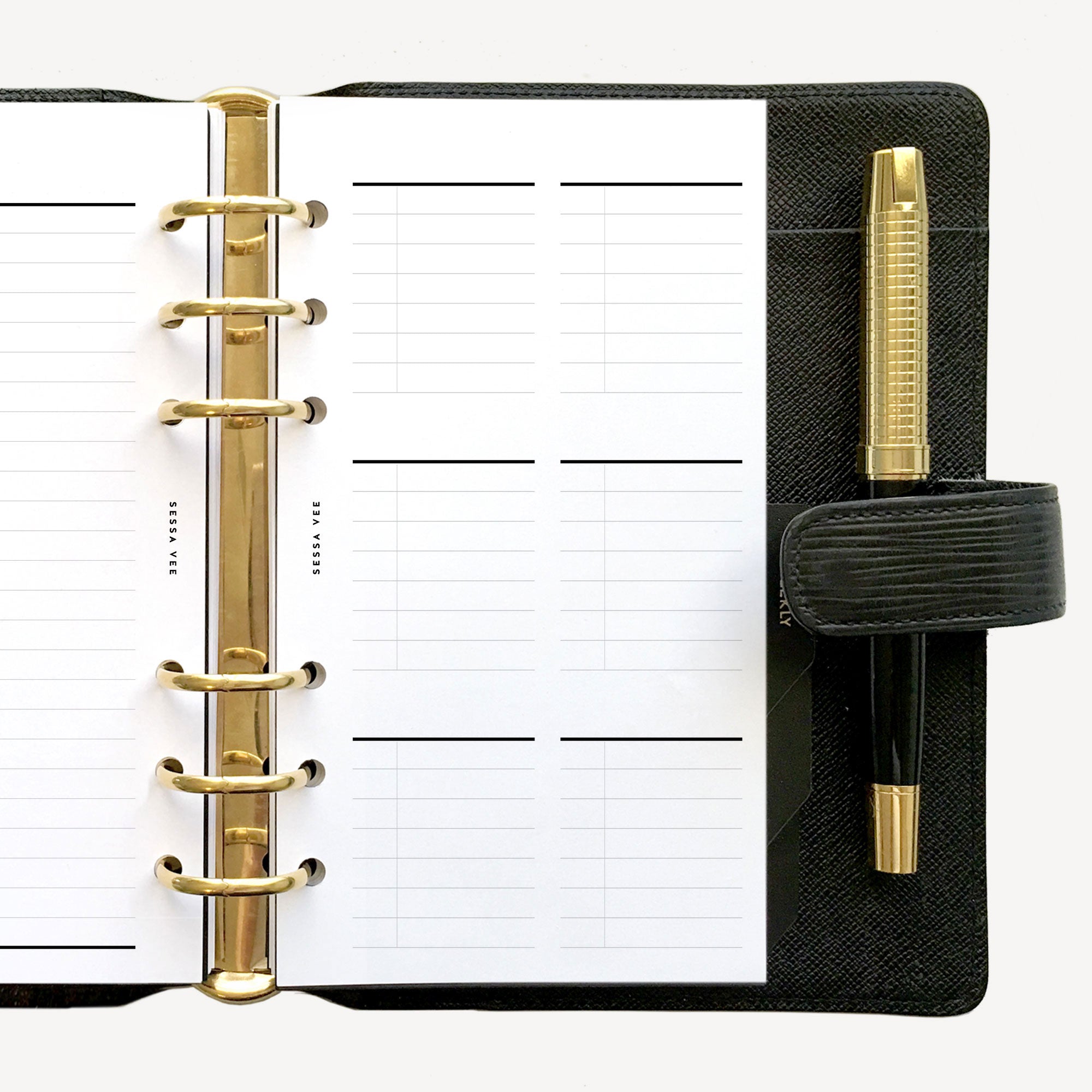 The above planner uses "Half Letter" inserts which are a bit taller and narrower than Sessa Vee A5 pages. (See below.)
