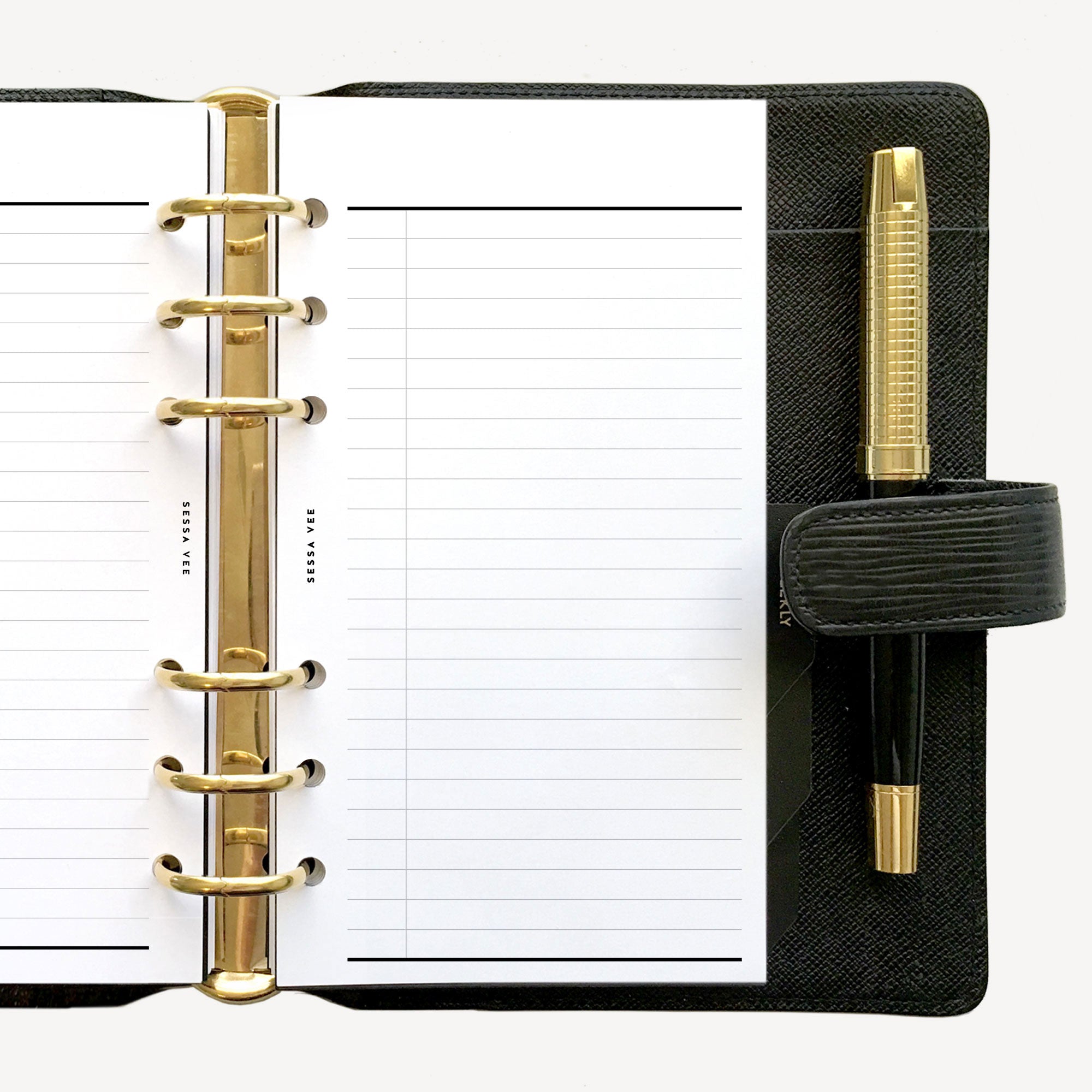 The above planner uses "Half Letter" inserts which are a bit taller and narrower than Sessa Vee A5 pages. (See below.)