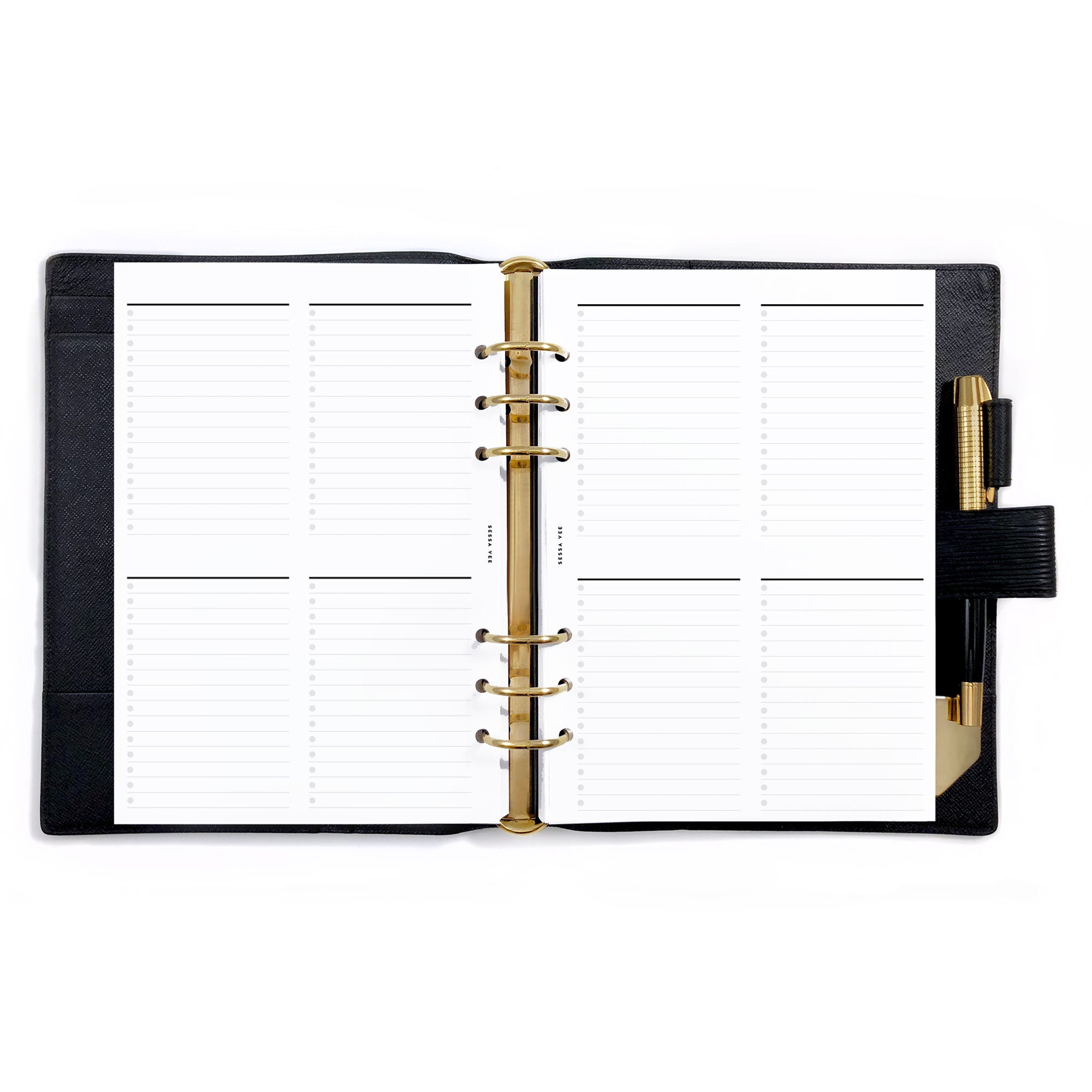 The above planner uses "Half Letter" inserts which are a bit taller and narrower than Sessa Vee A5 pages. (See below.)