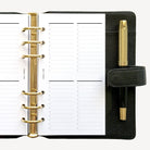 The above planner uses "Half Letter" inserts which are a bit taller and narrower than Sessa Vee A5 pages. (See below.)
