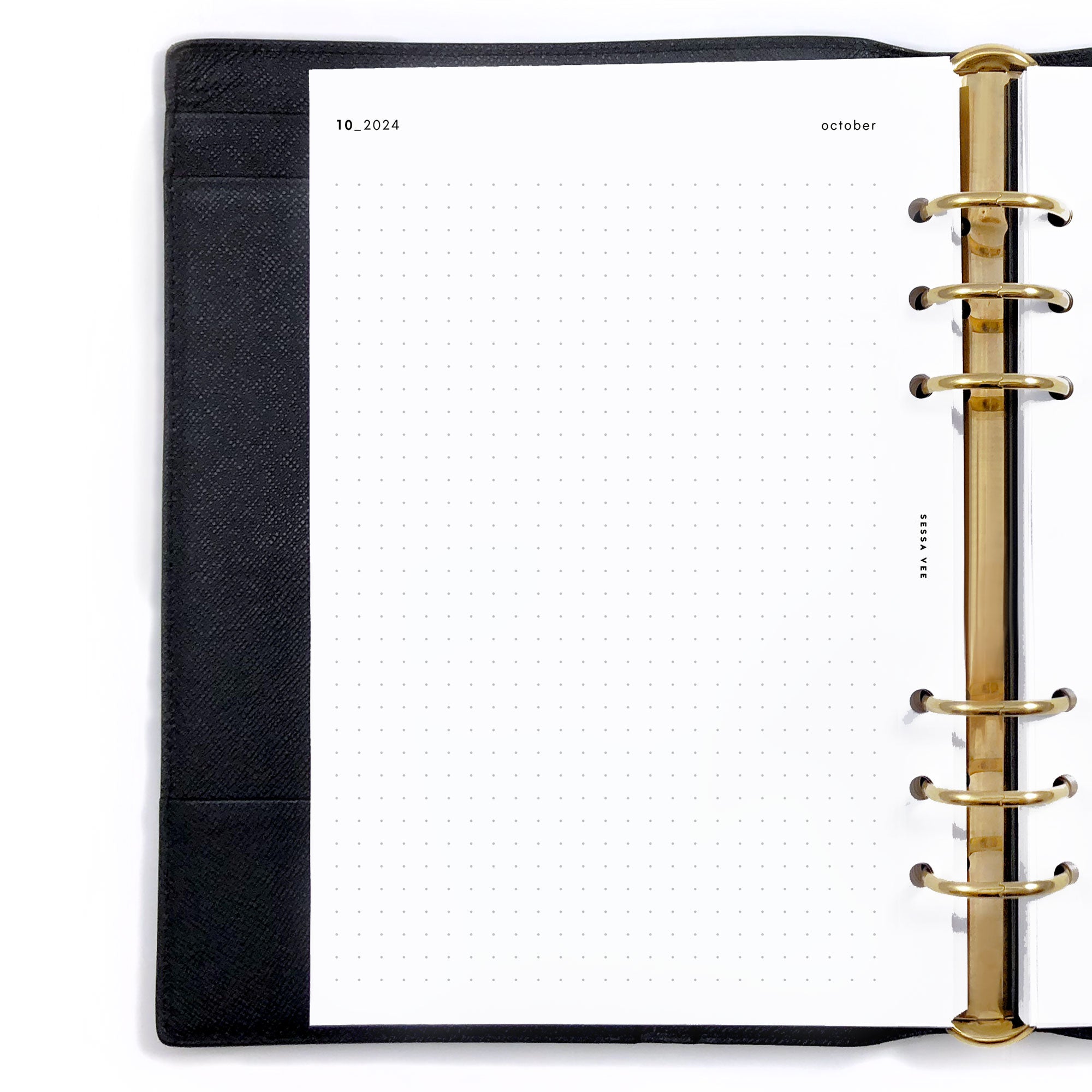 The above planner uses "Half Letter" inserts which are a bit taller and narrower than Sessa Vee A5 pages. (See below.)