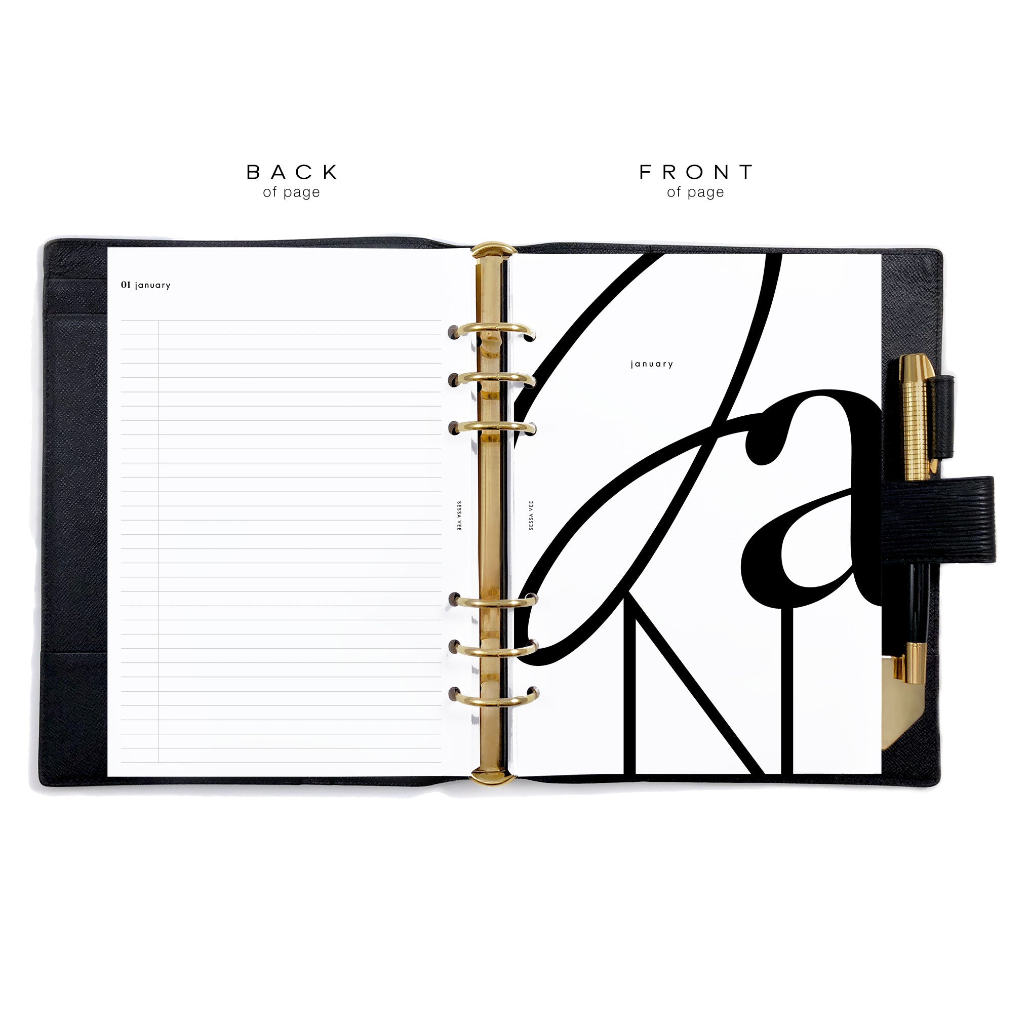 The above planner uses "Half Letter" inserts which are a bit taller and narrower than Sessa Vee A5 pages. (See below.)